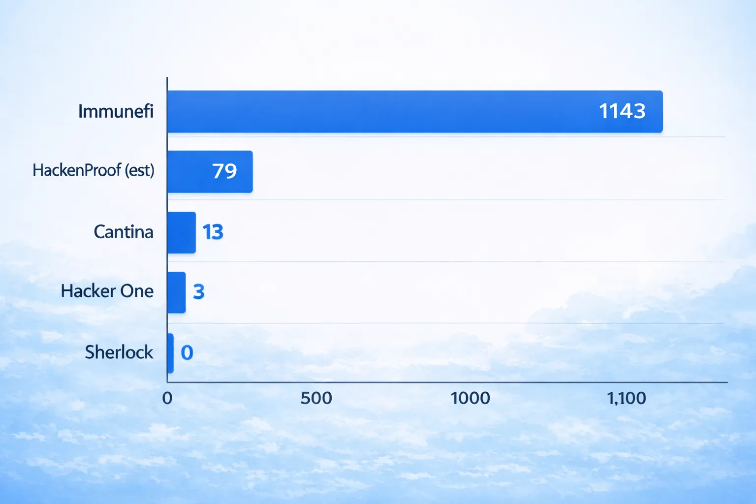 A new data analysis on onchain vulnerability flows showed that the critical vulnerability disclosure market has a clear dominant platform, and it's Immunefi. 1,143 disclosures. The next closest competitor? 79.